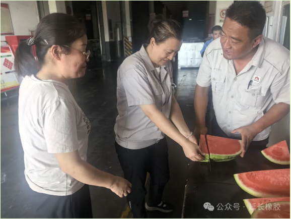 點擊量:193近日,陜西地區(qū)持續(xù)高溫,戶外溫度直逼 40℃。在這樣的悶熱天氣中,延長橡膠公司的生產(chǎn)一線依舊呈現(xiàn)出一片繁忙的景象。原材料庫的工作人員們始終堅守在庫區(qū)的各個崗位上,全力保障全鋼、半鋼輪胎的生產(chǎn)供應,采供部更是針對性地開展了一系列 “送清涼” 活動,為一線人員注入夏日里的清涼動力。