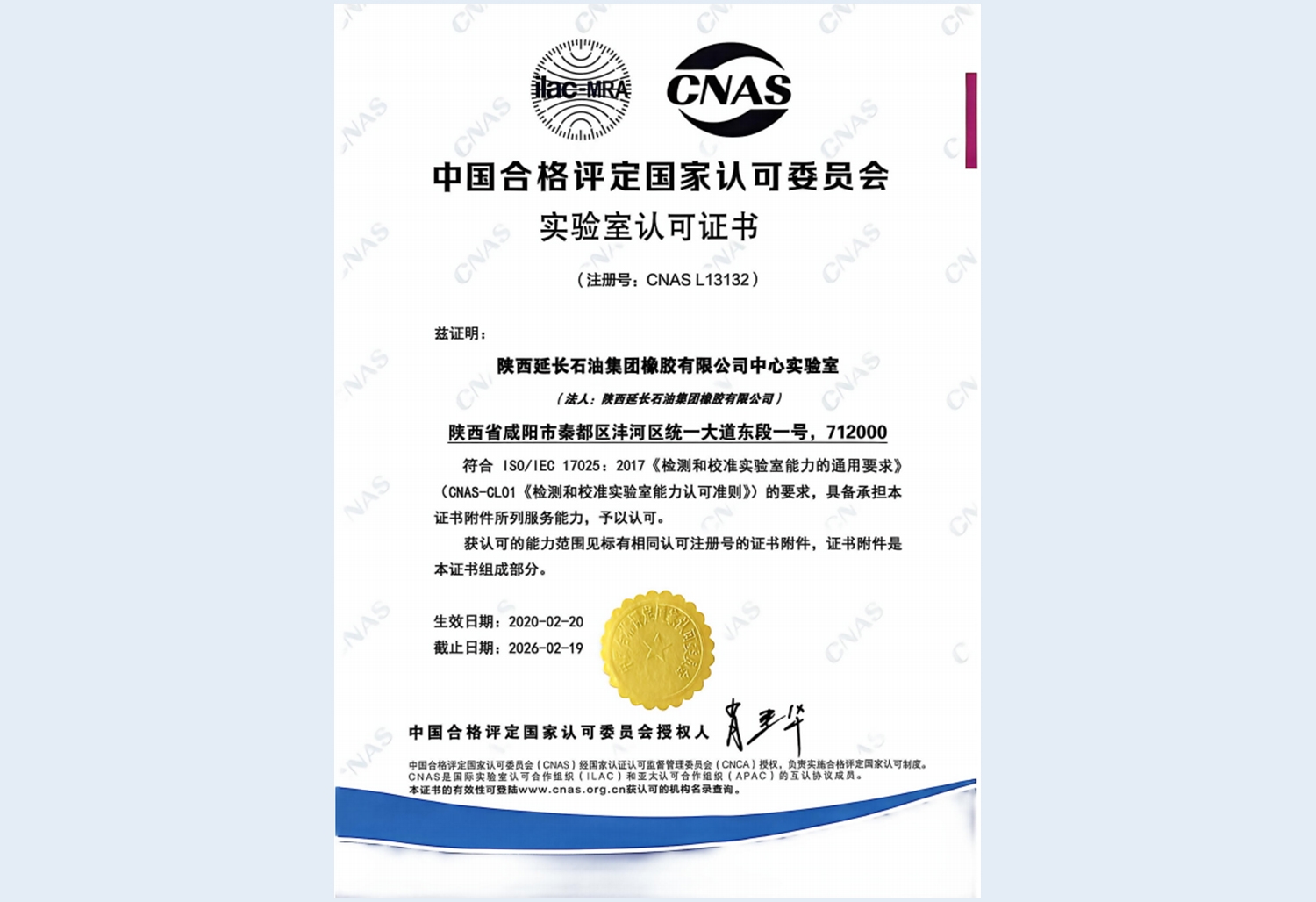 2月20日,公司通過行之有效的措施嚴(yán)格執(zhí)行CNAS 質(zhì)量管理體系要求,順利取得了CNAS實驗室認(rèn)可證書。