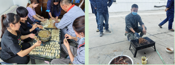 當(dāng)“圓月皎皎在中天”時,各車間、各班組里處處洋溢著歡聲笑語,大家積極秀廚藝,展示各自烹飪技能、享受美食,像一家人一樣圍坐一起,分享著“團(tuán)圓”的味道!